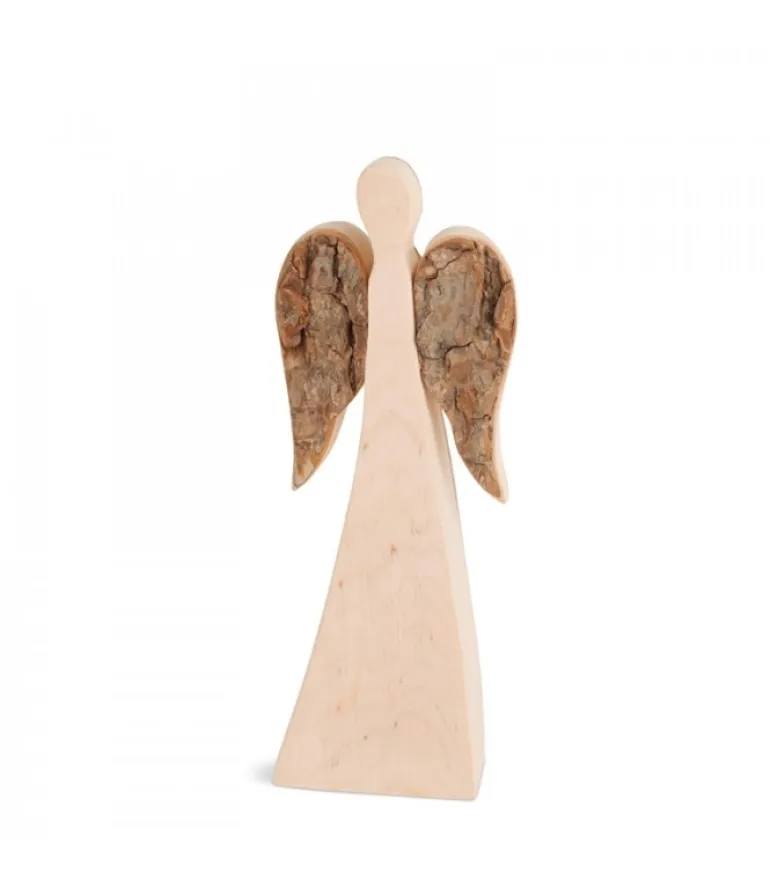 Ange De Noël Double Face En Ecorce Et Bois Poli.
