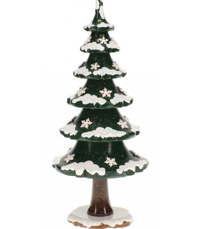 Figurine D’Un Sapin Recouvert De Neige Orne De Quelques Petits Cristaux De Neige. Tres Belle Piece De 22Cm Qui Viendra Apporter Une Touche Feerique D’Hiver A Votre Village.