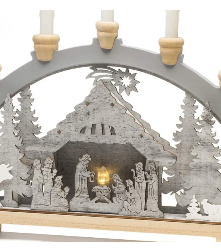 Arche De Noël Lumineuse Led En Bois, 7 Bougies.