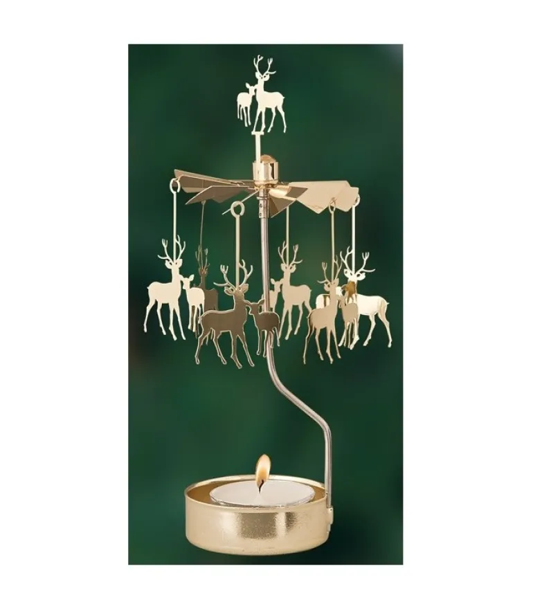 Bougeoir Carrousel Cerf En Metal Dore.
