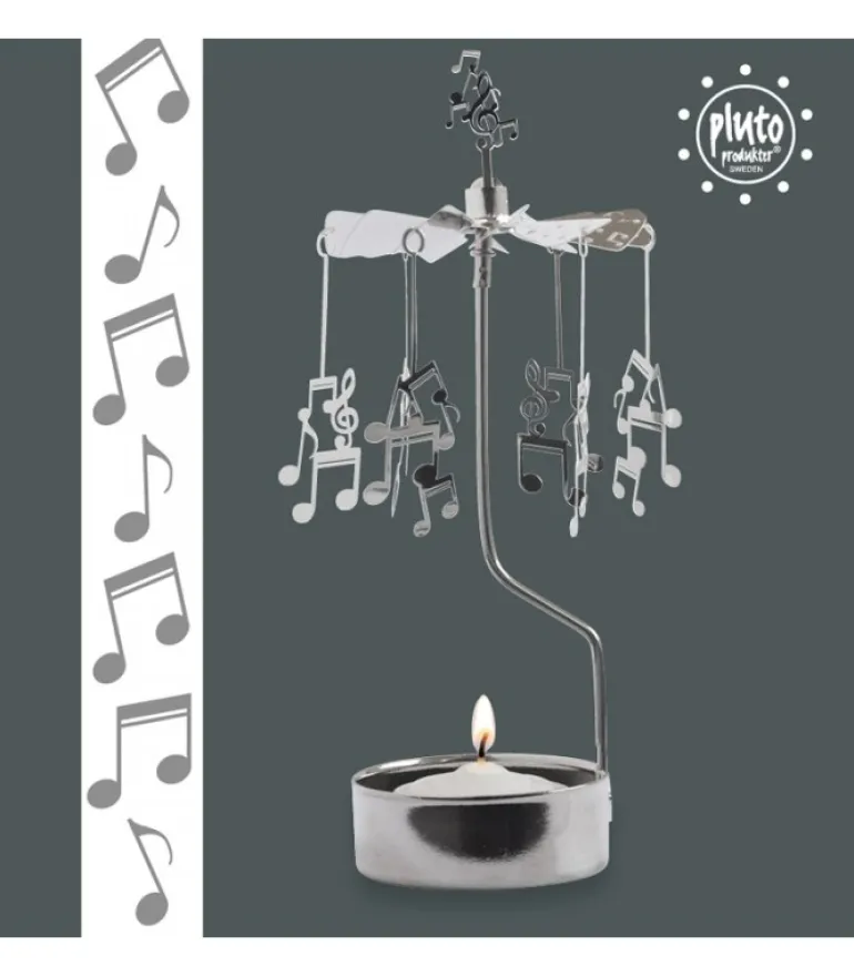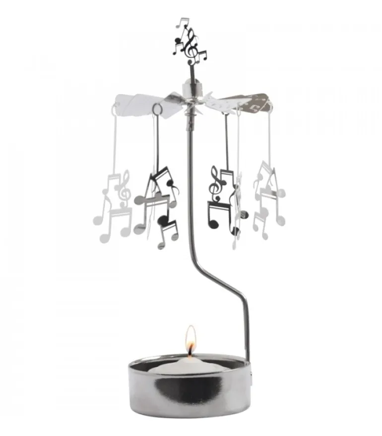 Bougeoir Carrousel Avec Six Notes De Musique En Metal Argente.