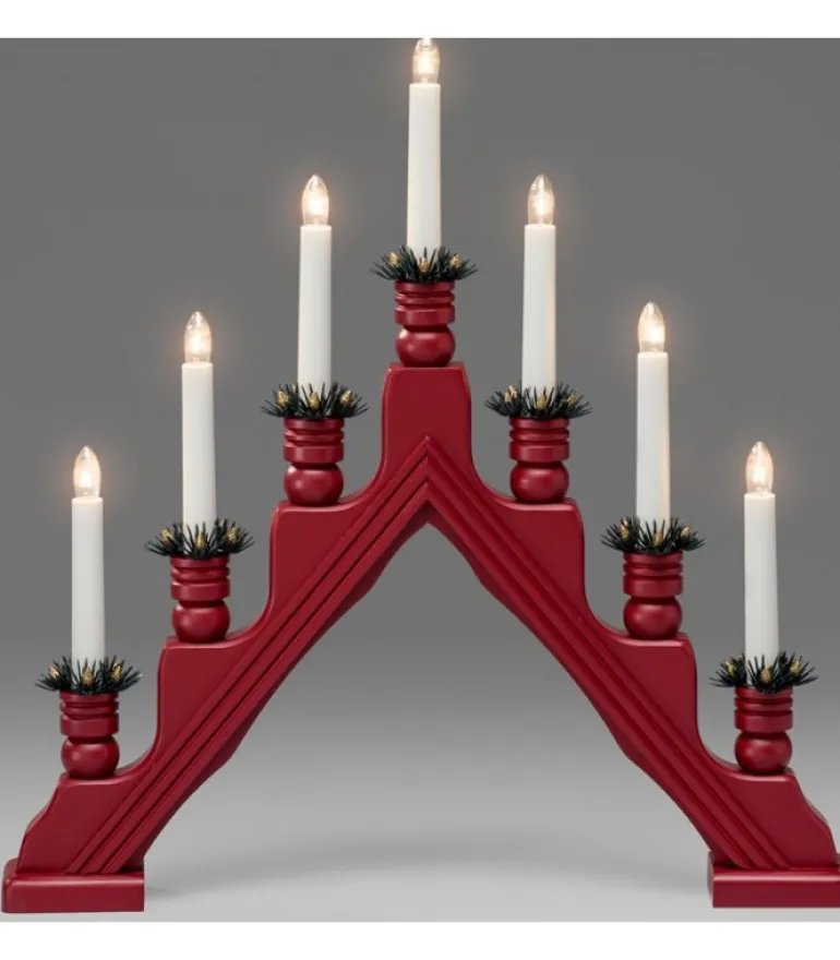 Chandelier Pyramide A Bougie Electrique Avec Décorations, Couleur Rouge.