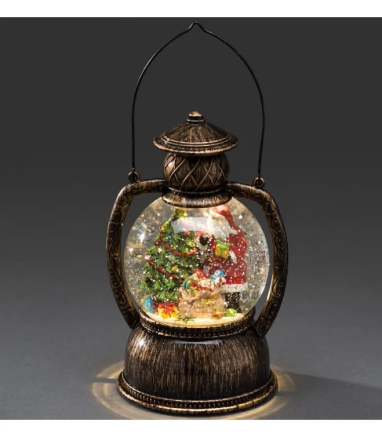 Boule À Neige Noël A Led En Forme De Lanterne-Tempete Avec Père Noël, Remplie D’Eau.