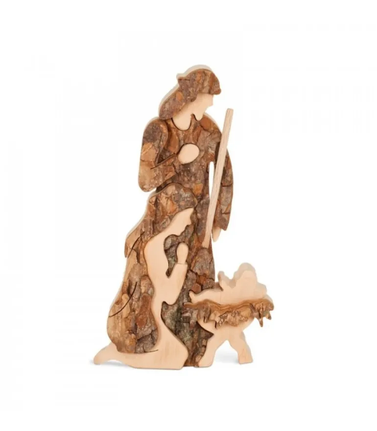 Personnages De La Crèche De Noël En Bois Et Ecorce.