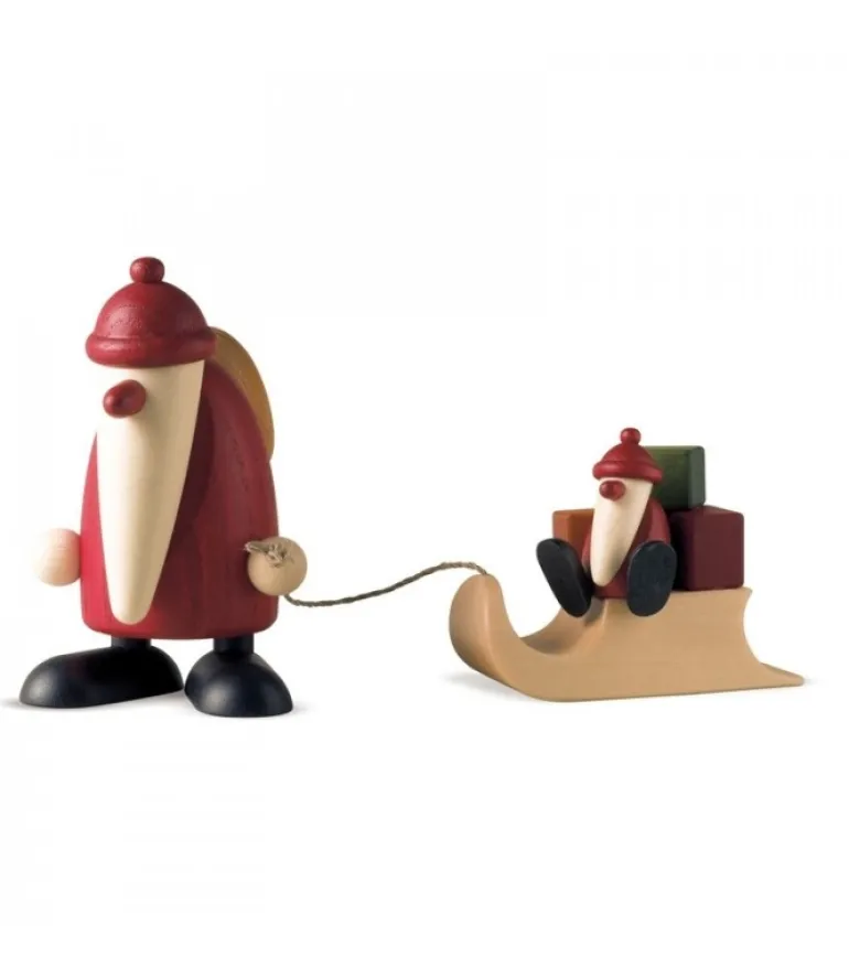 Figurine Père Noël Tirant Une Luge Avec Enfant