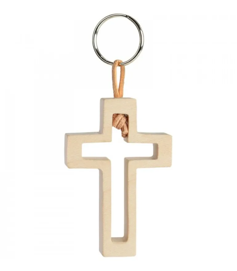 Porte-Clef Croix En Bois Avec Croix Découpee, 5,5 Cm