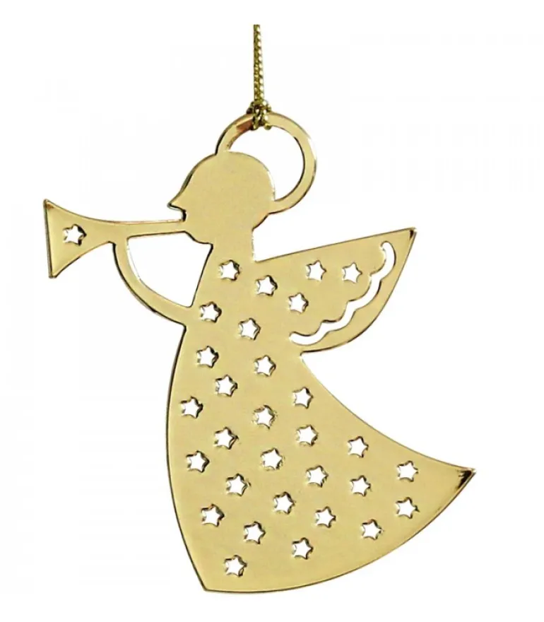 Ange Avec Trompette En Metal Dore A Suspendre.