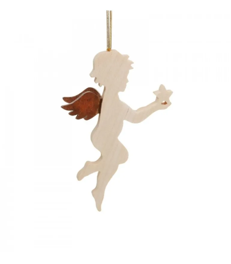 Petit Ange Décoratif A Suspendre, En Bois D’Erable, Tenant Une Etoile Dans La Main.