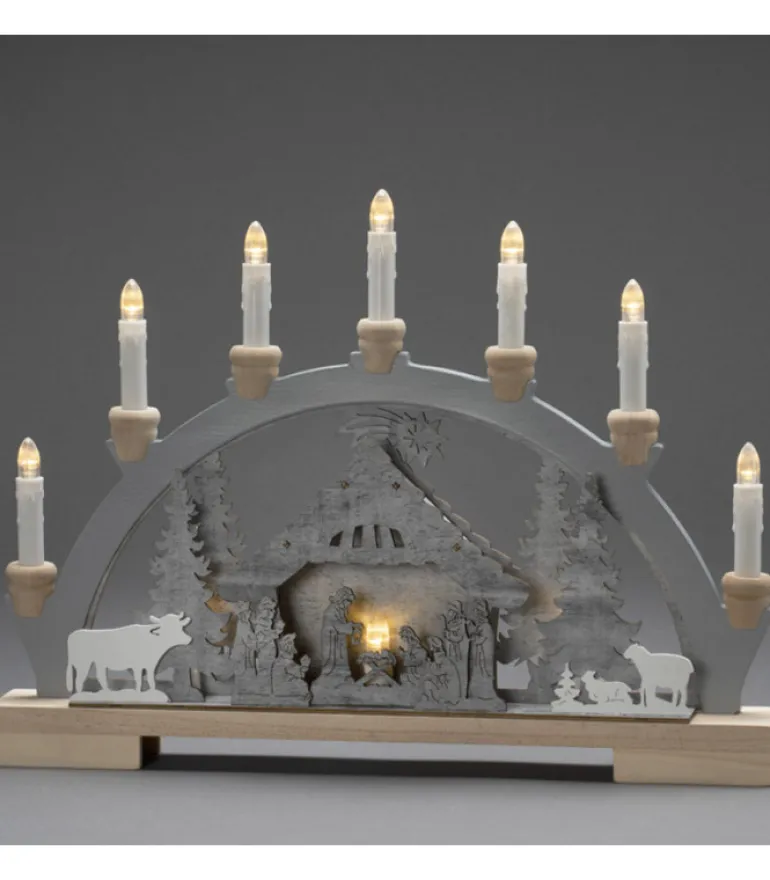 Arche De Noël Lumineuse Led En Bois, 7 Bougies.