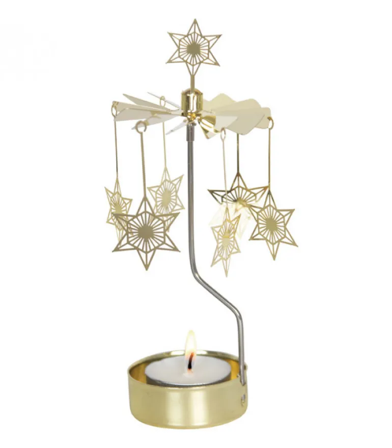 Bougeoir De Table Carrousel Etoiles Dorees.