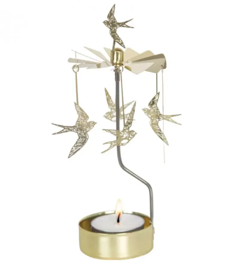 Bougeoir Carrousel Hirondelles En Metal Dore.
