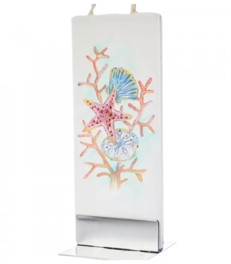Bougie Déco Marine, Motif Etoile De Mer Et Coquillages.