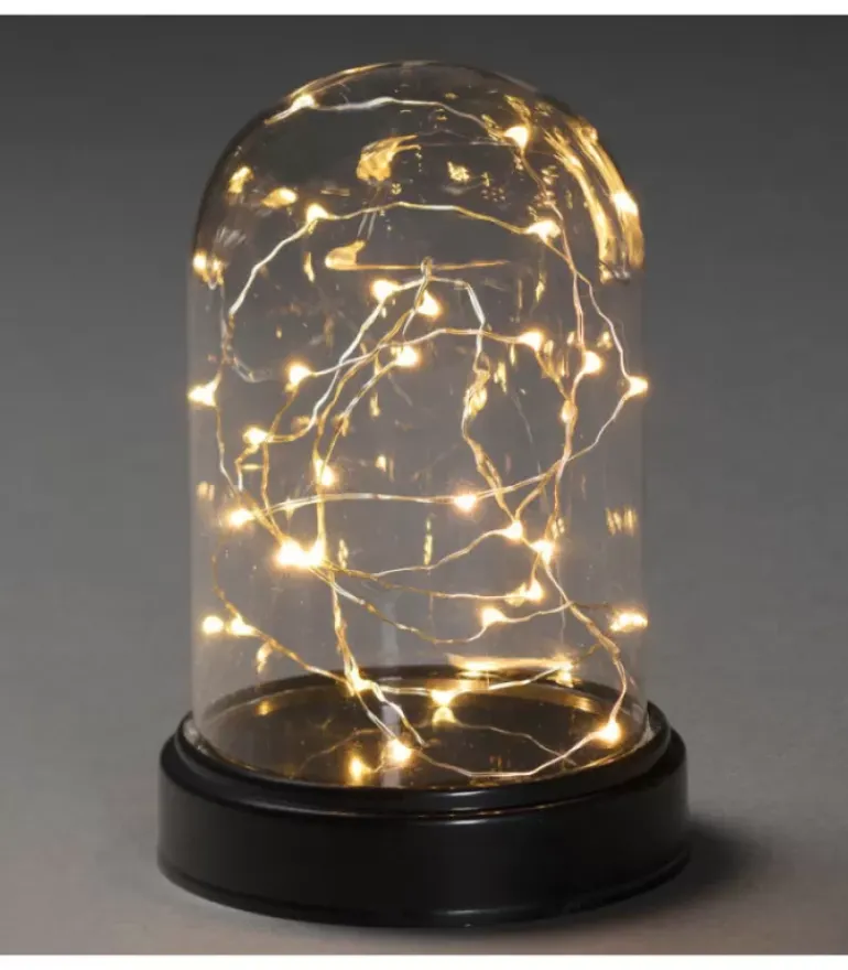 Boule En Verre Décorative Avec Fil Couleur Argent Torsade, 30 Diodes Led Couleur Ambrees, Hauteur 17,5 Cm.