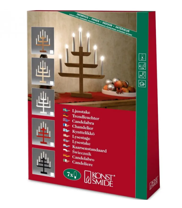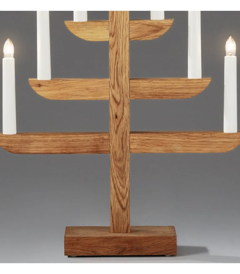 Chandelier De Noël 7 Ampoules, En Bois De Chene Naturel Huile.