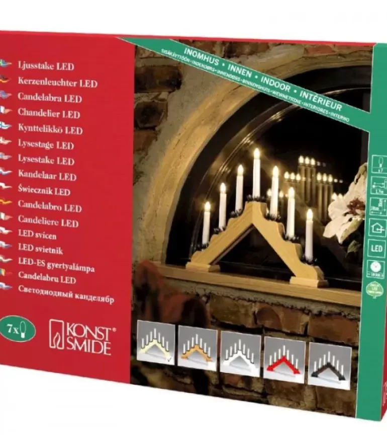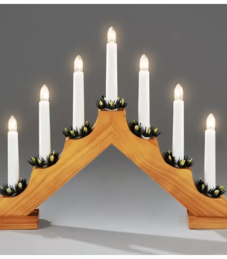 Chandelier De Noël Pyramide En Bois A Bougie Electrique, Couleur Chene.