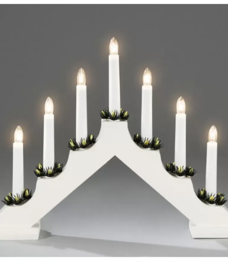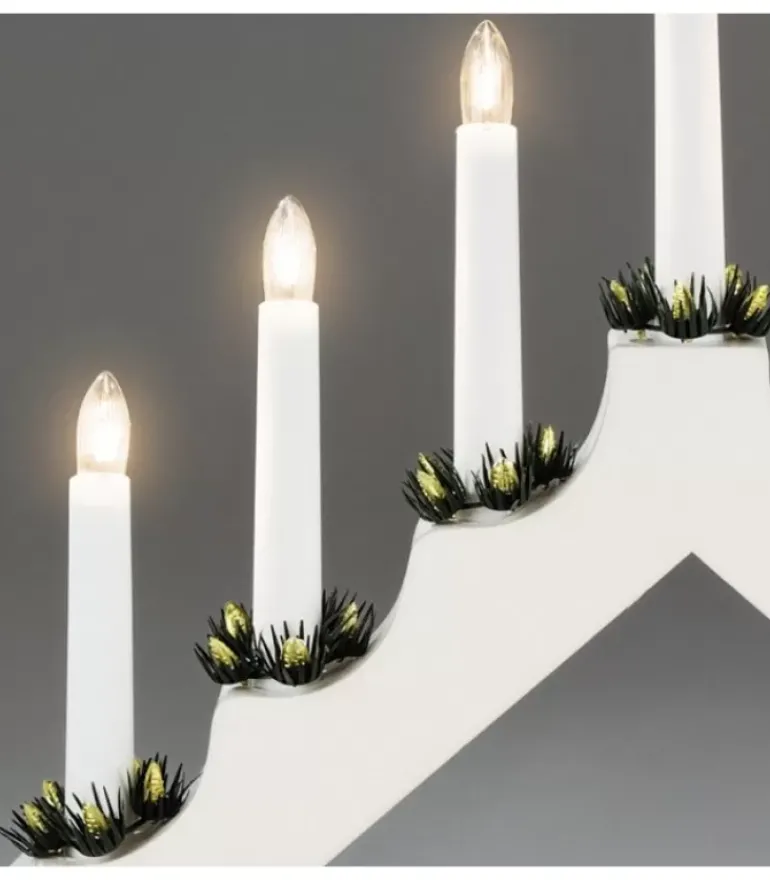 Chandelier De Noël Pyramide En Bois A Bougie Electrique, Couleur Blanc.