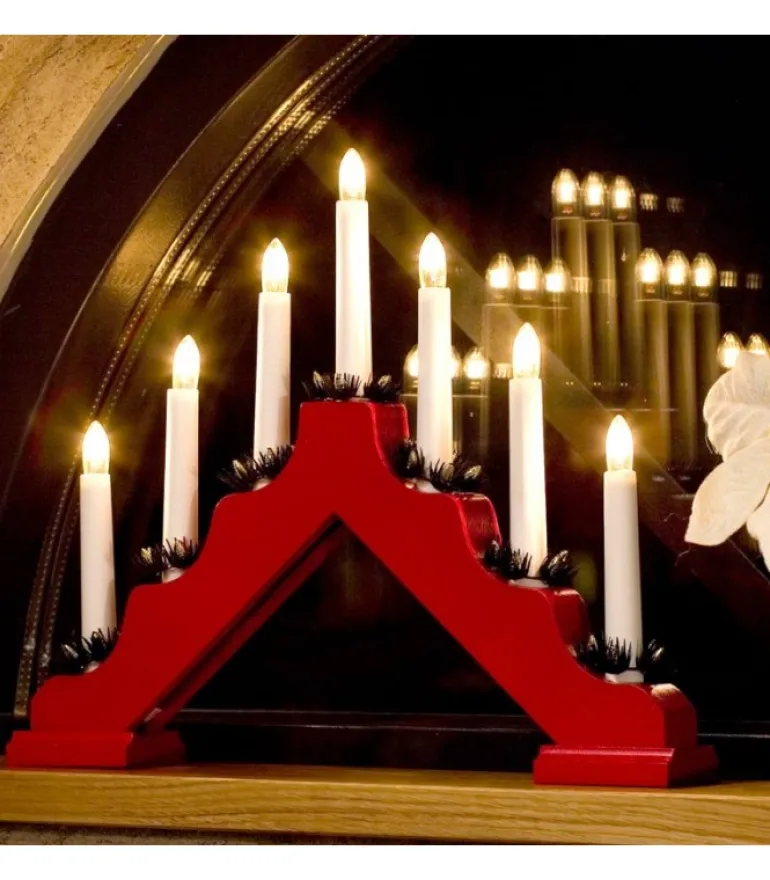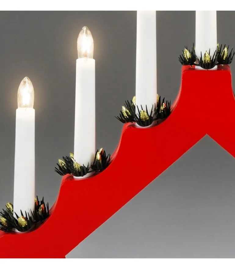 Chandelier De Noël Pyramide En Bois A Bougie Electrique, Couleur Rouge.