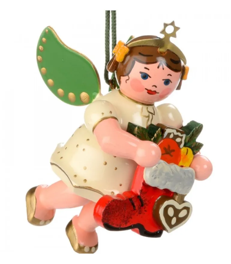 Ange En Bois Peint Et Botte De Noël.