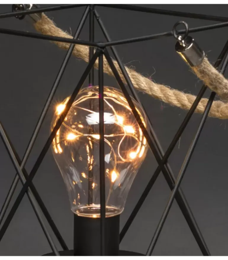 Lanterne En Metal Carree Avec Ampoule Contenant 9 Diodes Led Ambrees, Hauteur 19 Cm.