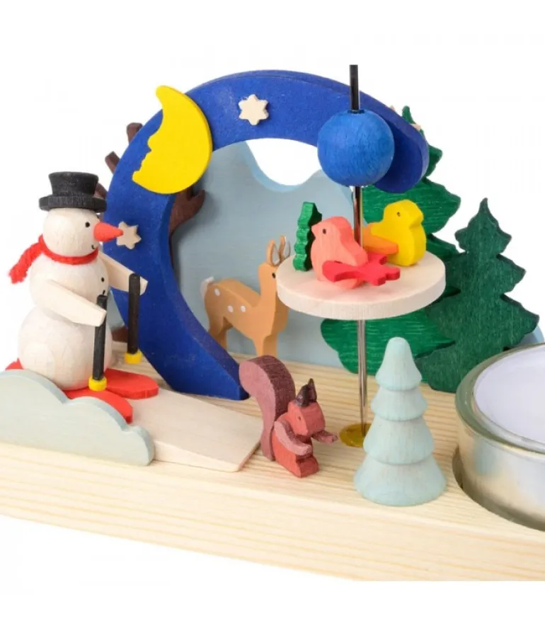 Petit Manège De Noël En Bois Bonhomme De Neige Et Animaux De La Foret.