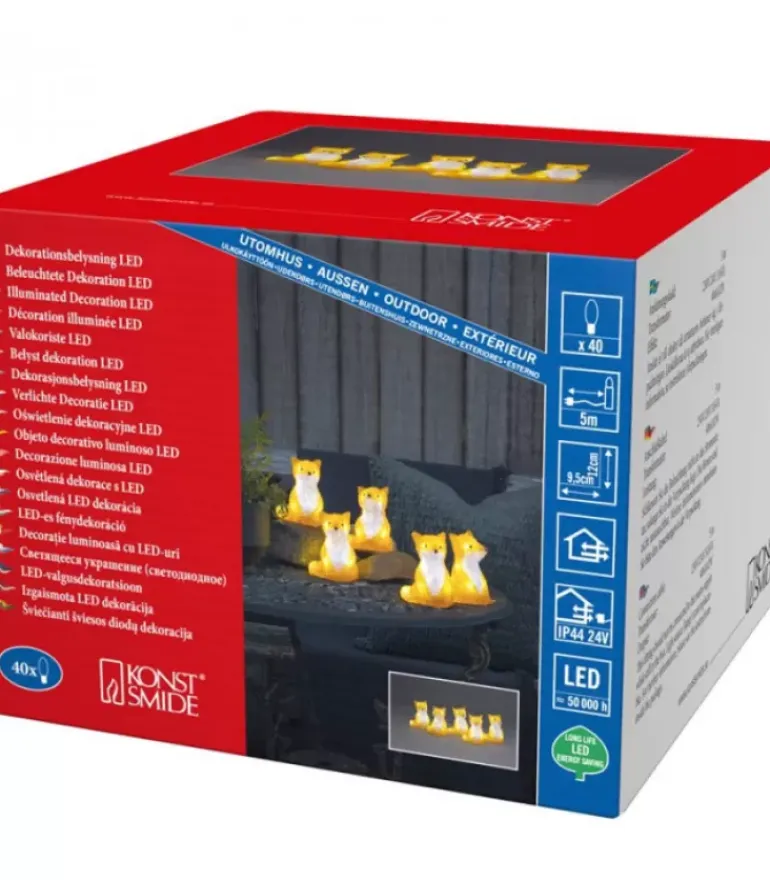 Renards Lumineux Acryliques Led Assis, Lot De 5, 40 Diodes Blanches Froides.